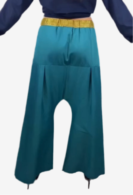Plus ample qu’une jupe-culotte, plus fluide qu’un pantalon classique — c’est une pièce à part, pensée pour jouer sur les contrastes et le mouvement.