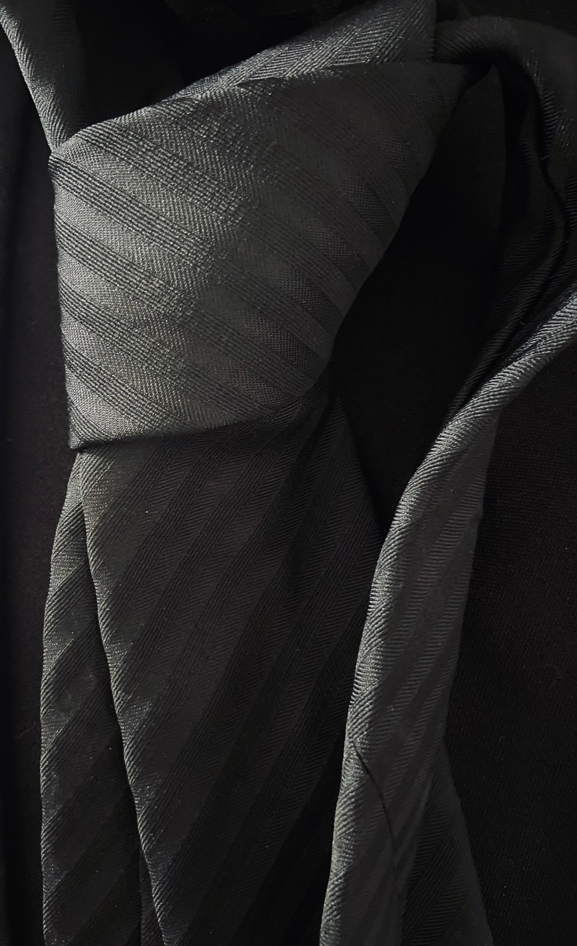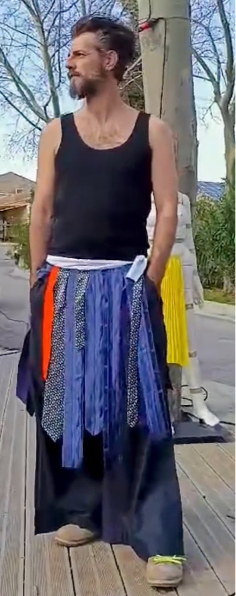 👔 -Créée à partir de véritables cravates vintage chinées une à une, cette pièce unique détourne les codes du formel avec l'insolence élégante d'un Londres punk, quelque part entre King's Road et un vestiaire poétique.